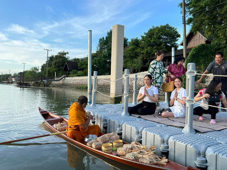 ตักบาตรยามเช้า ริมแม่น้ำแม่กลอง กับคณะทัวร์อารยสถาปัตย์